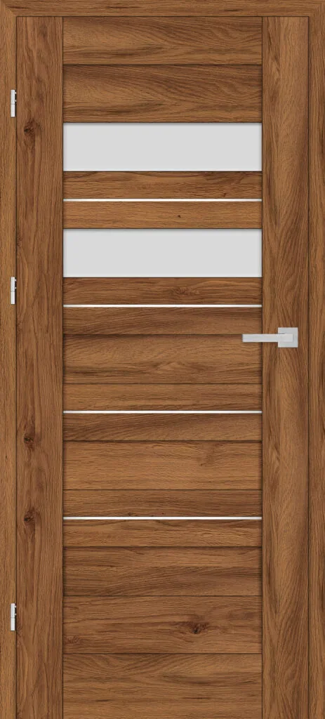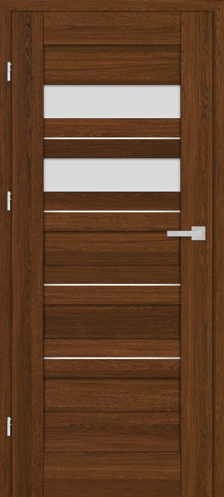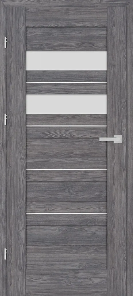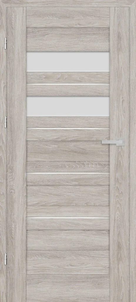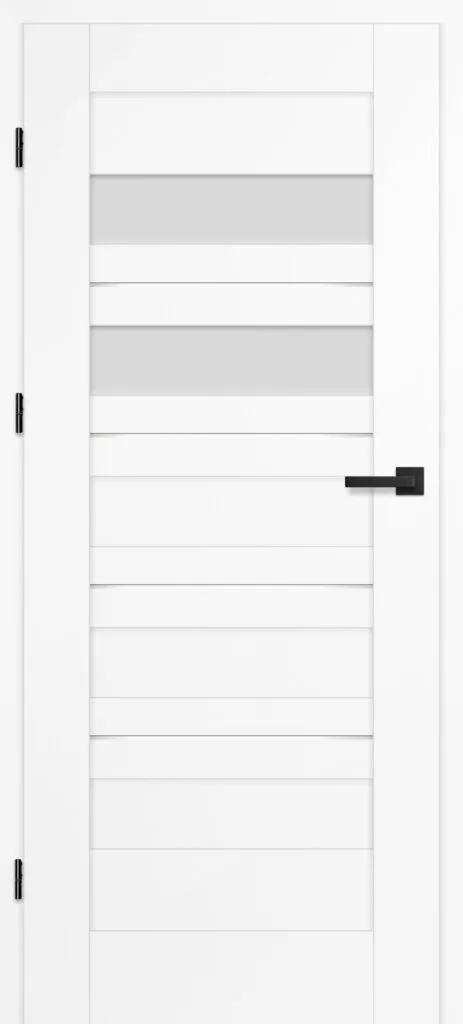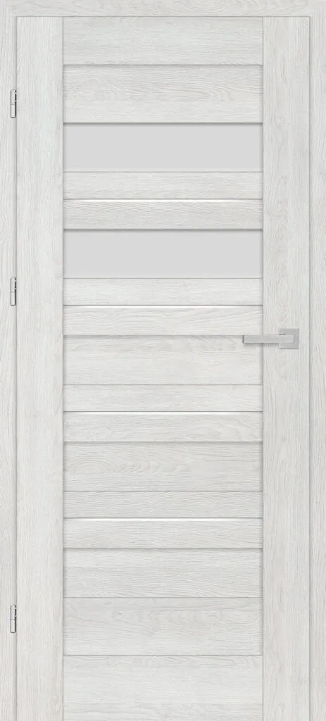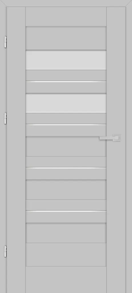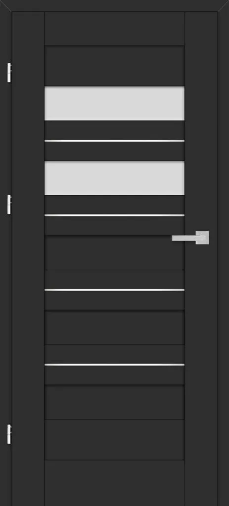 • three, silver-colored (optionally black at an additional cost) concealed hinges in the non-rebated door leaf; the hinges are delivered and priced with the door frame