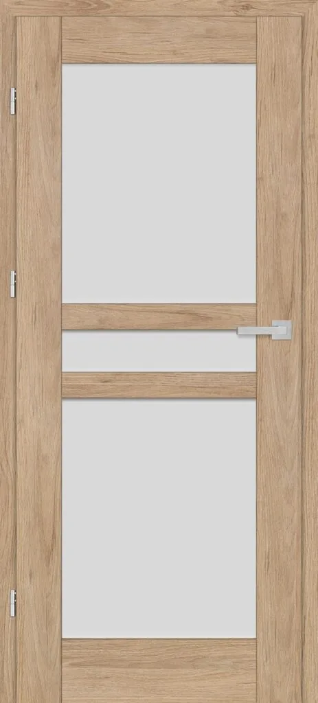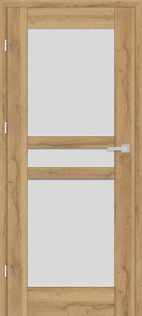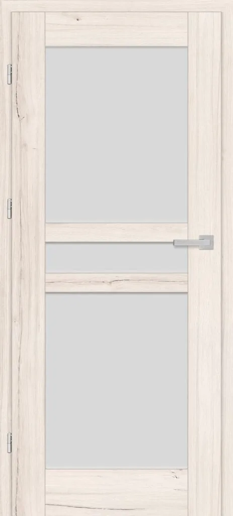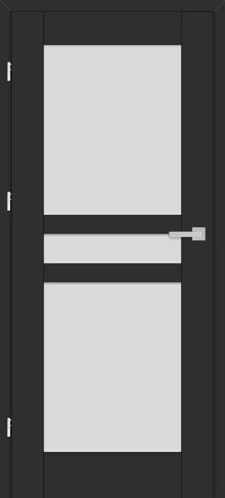 • three, silver-colored (optionally black at an additional cost) concealed hinges in the non-rebated door leaf; the hinges are delivered and priced with the door frame