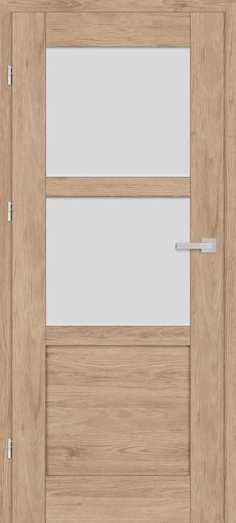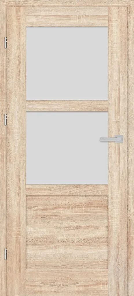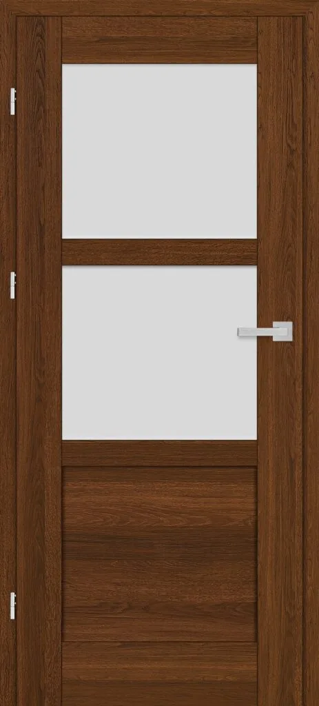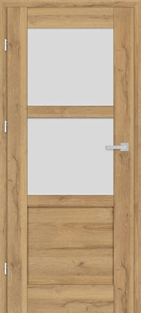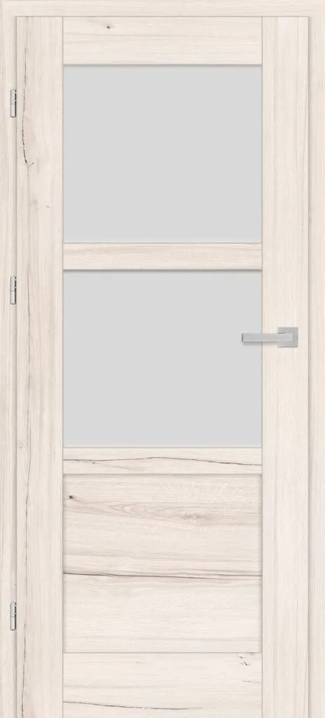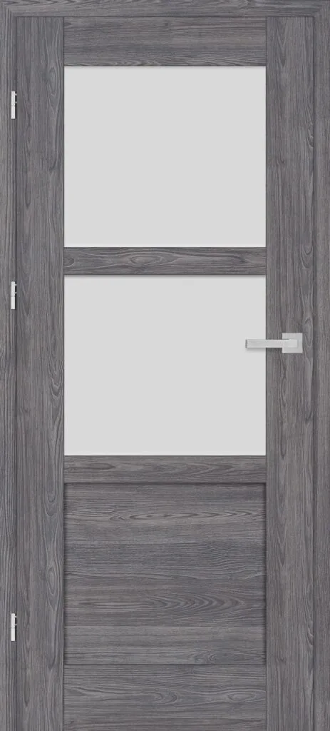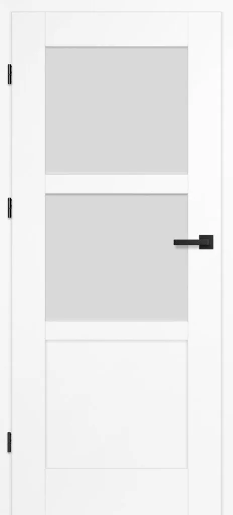 • three, silver-colored (optionally black at an additional cost) concealed hinges in the non-rebated door leaf; the hinges are delivered and priced with the door frame