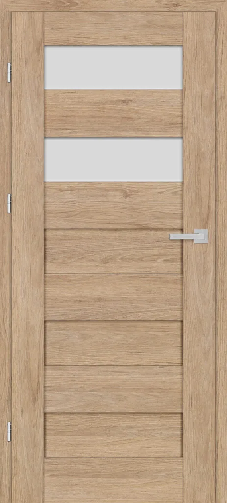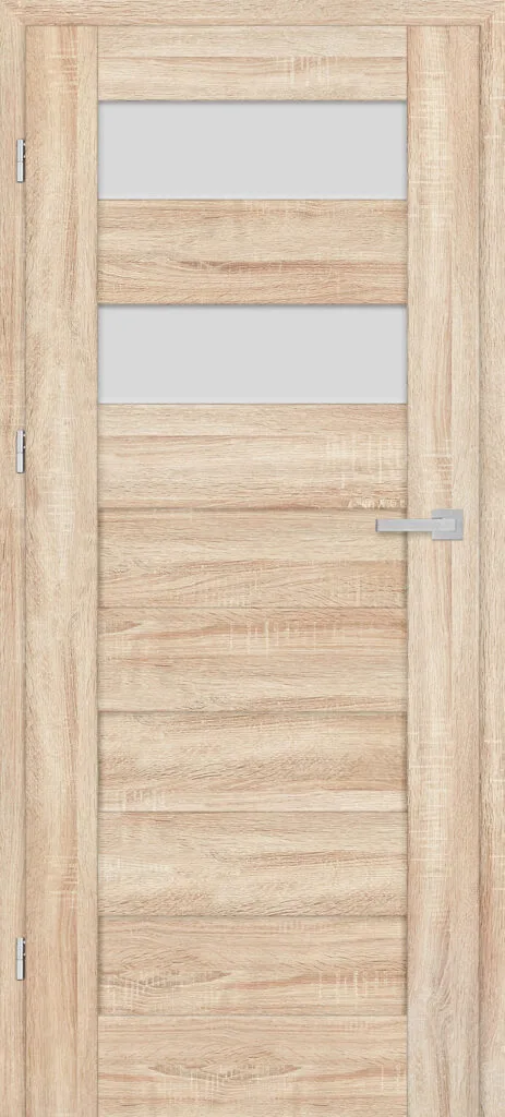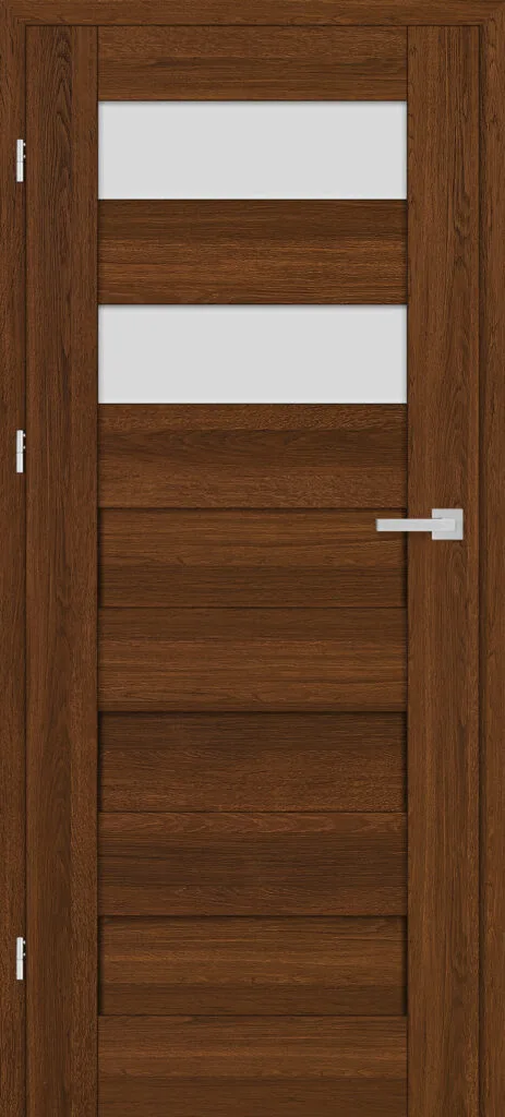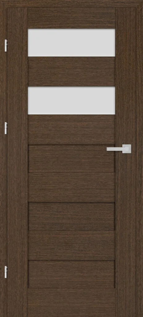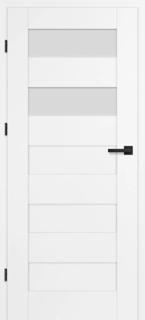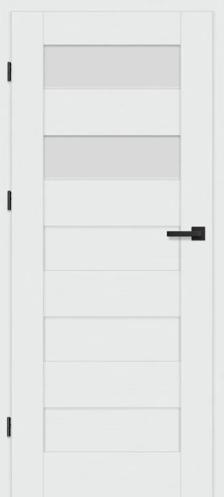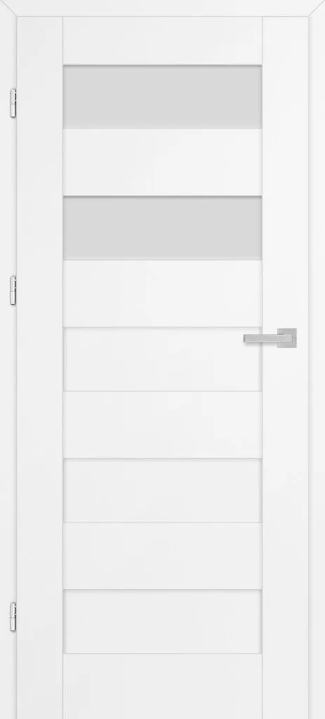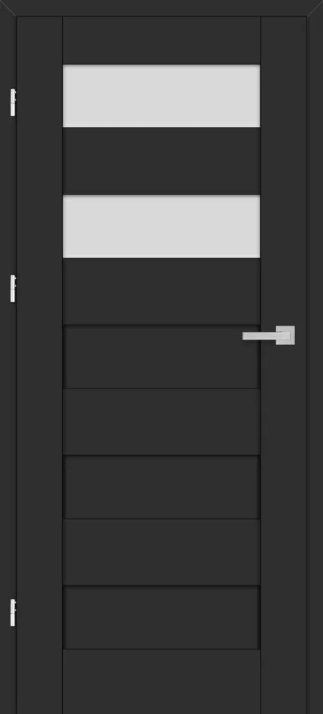 • three, silver-colored (optionally black at an additional cost) concealed hinges in the non-rebated door leaf; the hinges are delivered and priced with the door frame