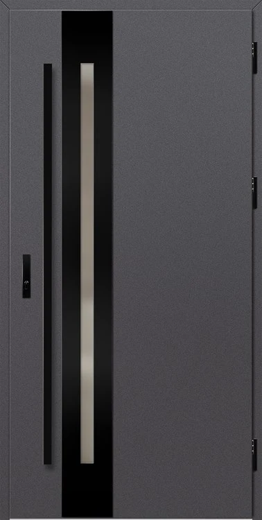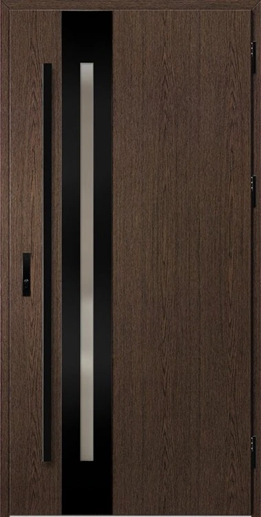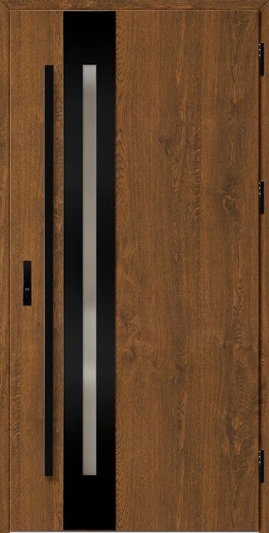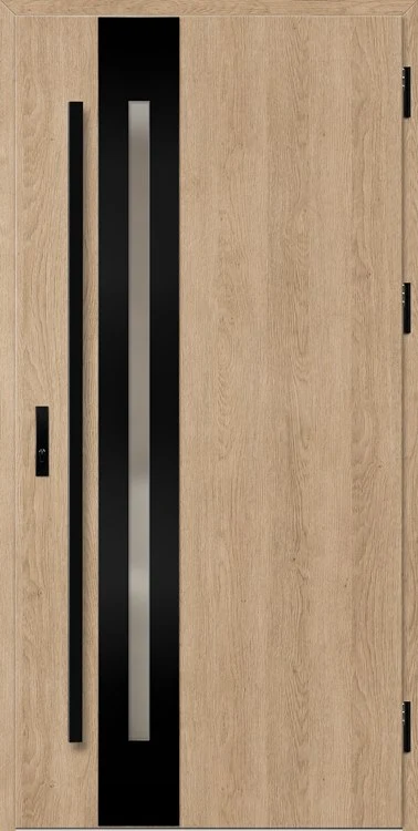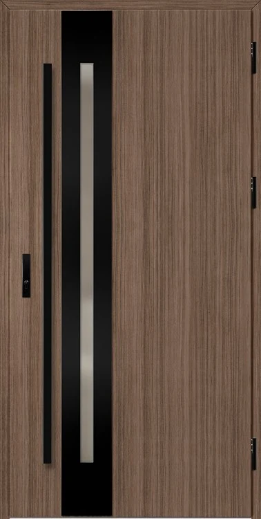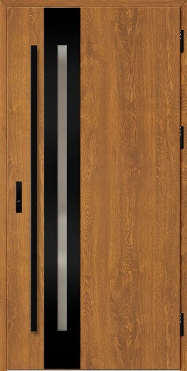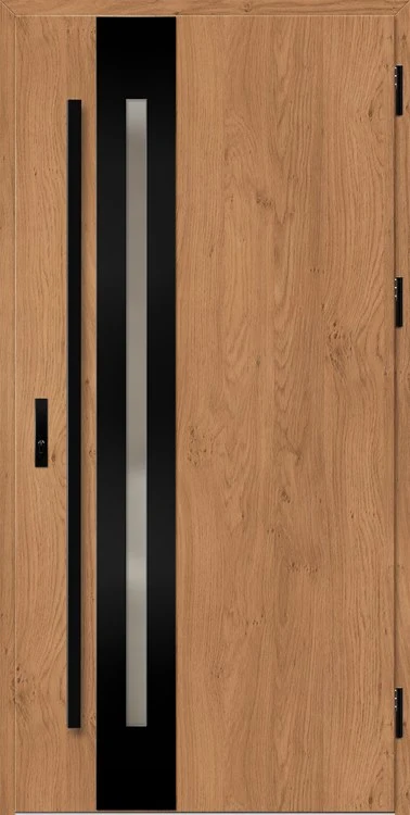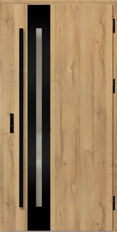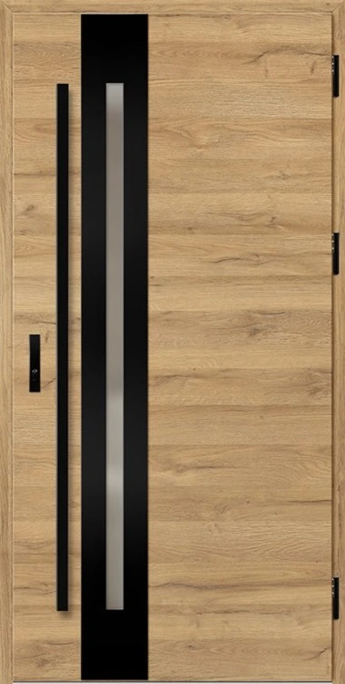 Entrance doors made of steel sheet, protected with PVC laminate, characterized by high resistance to changing weather conditions, UV radiation and mechanical damage. The texture matching the decorative motif creates a product of high aesthetic value.