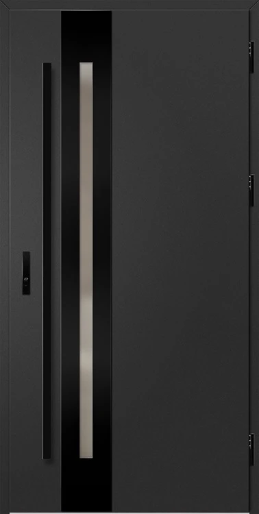 • aluminum door frame painted black and laminated in the same color as the leaf, with warm aluminum threshold and fully adjustable lock plate for doors made with THERMO HOT technology