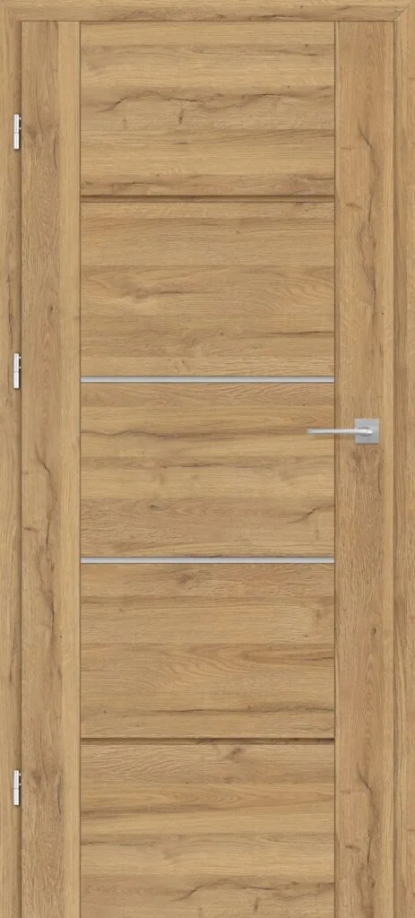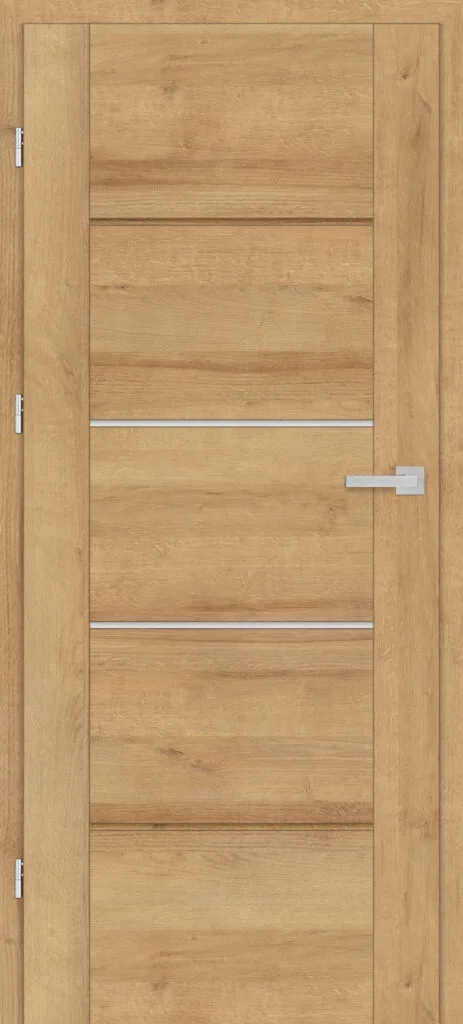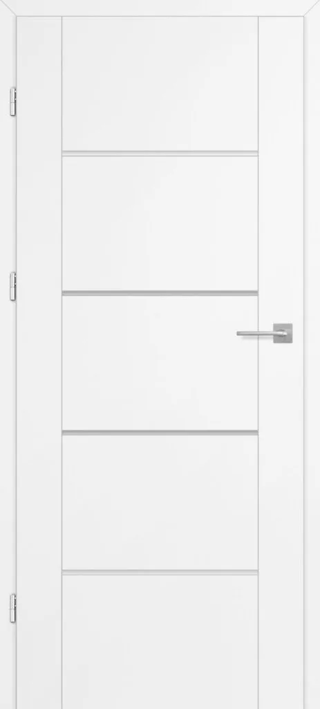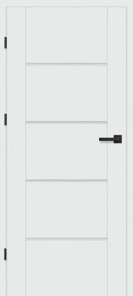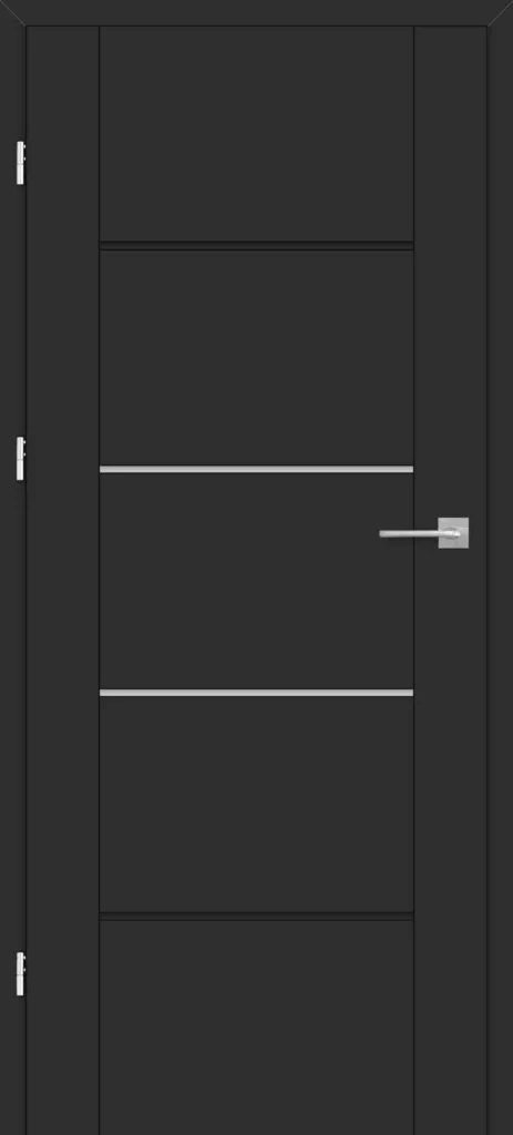 • three, silver-colored (optionally black at an additional cost) concealed hinges in the non-rebated door leaf; the hinges are delivered and priced with the door frame