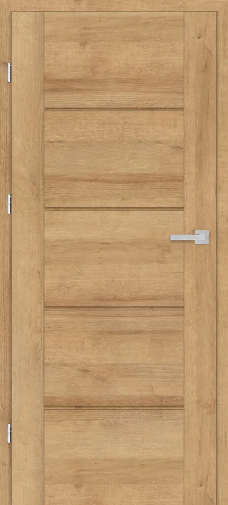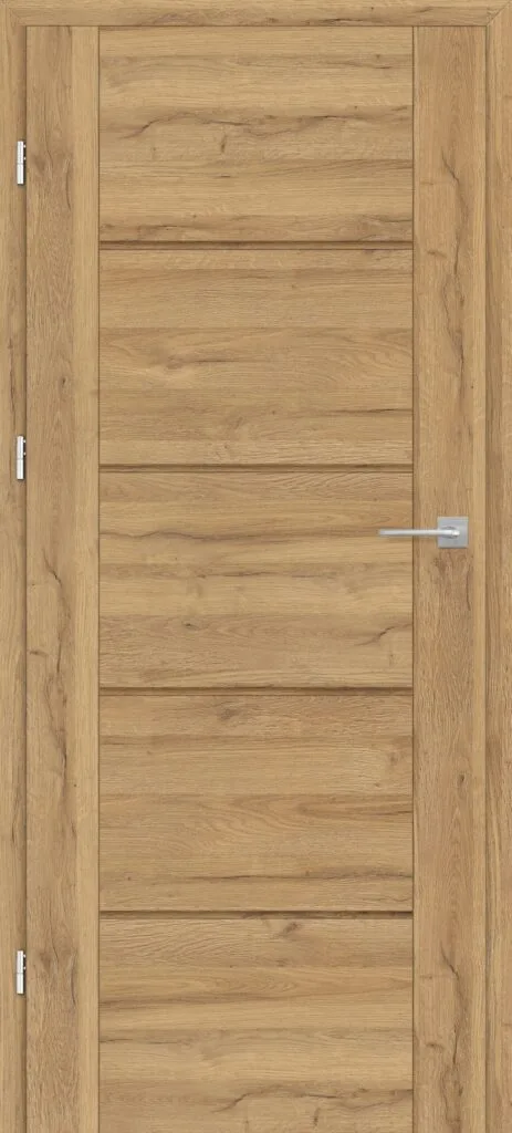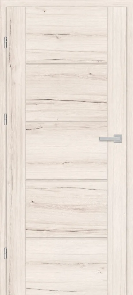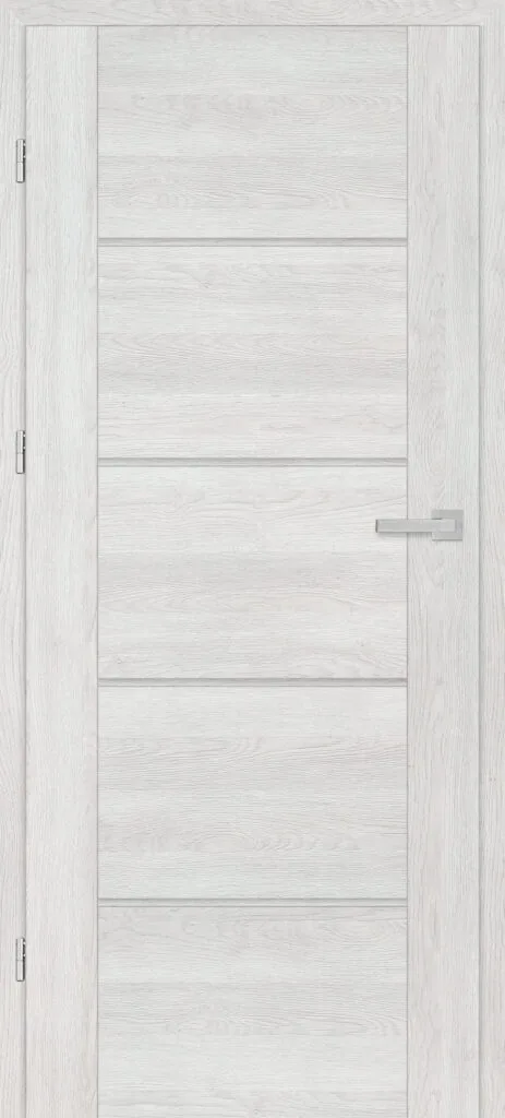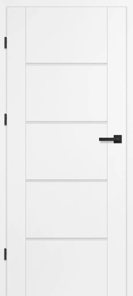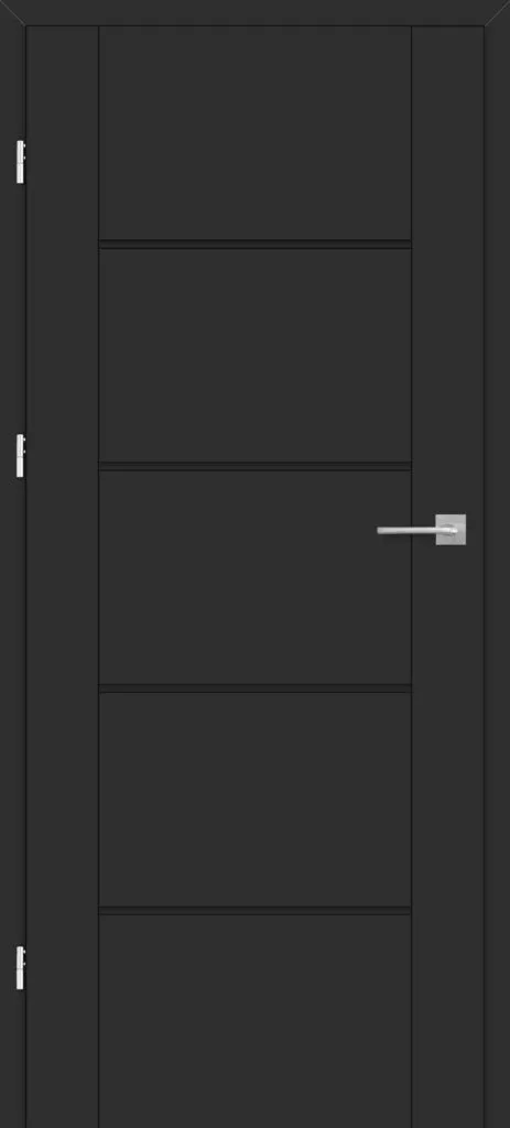 • three, silver-colored (optionally black at an additional cost) concealed hinges in the non-rebated door leaf; the hinges are delivered and priced with the door frame