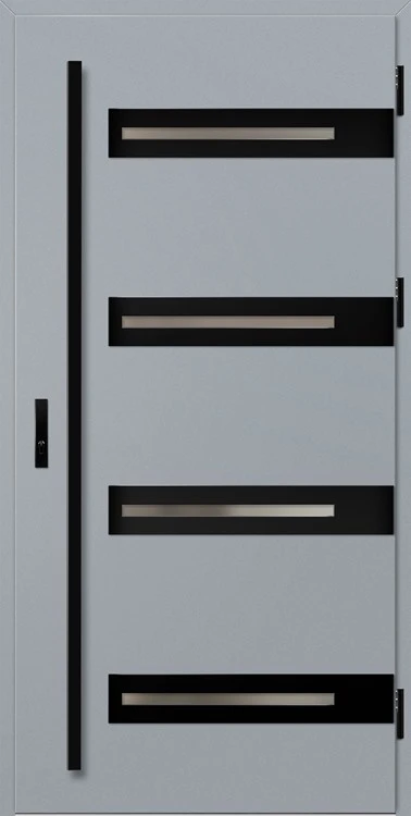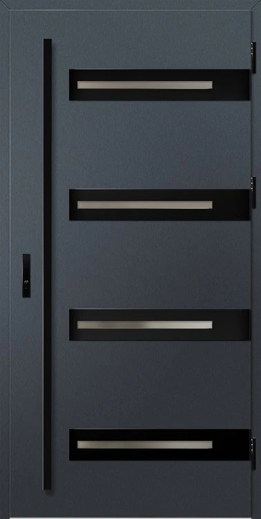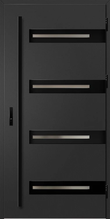 Aluminum frame structure – painted black and covered with laminate in the same color as the door leaf, with warm aluminum threshold and fully adjustable lock plate, for doors with THERMO HOT technology.