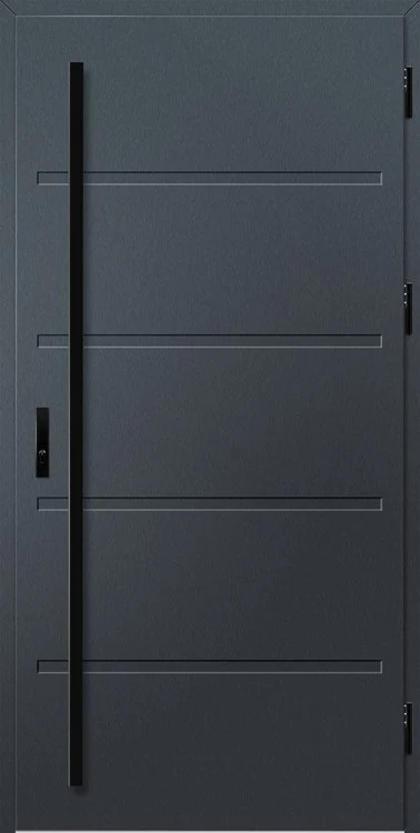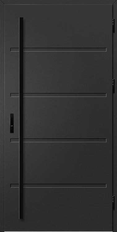 Aluminum frame structure – painted black and covered with laminate in the same color as the door leaf, with warm aluminum threshold and fully adjustable lock plate, for doors with THERMO HOT technology.