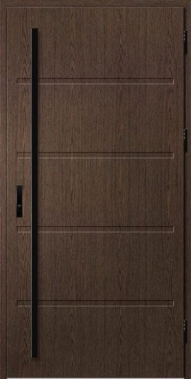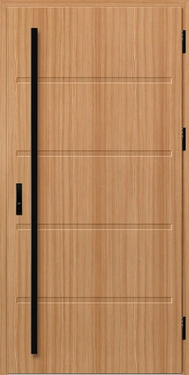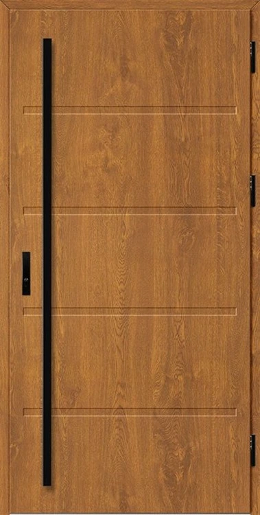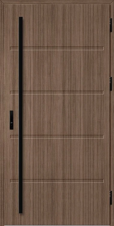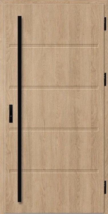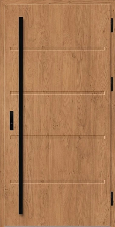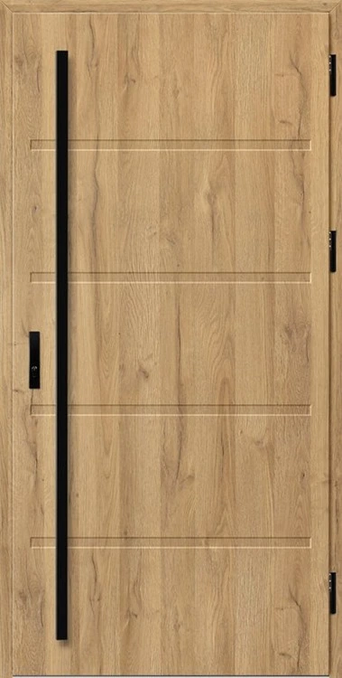 Exterior doors made of steel sheet, protected with PVC laminate, which provides high resistance to changing weather conditions, UV radiation and mechanical damage. The texture, adapted to the decorative motif, gives the product a high aesthetic value.