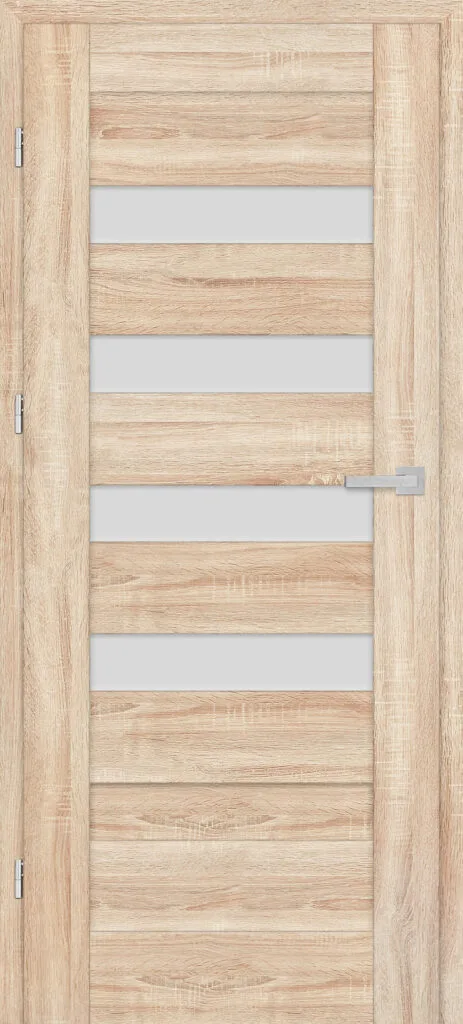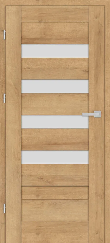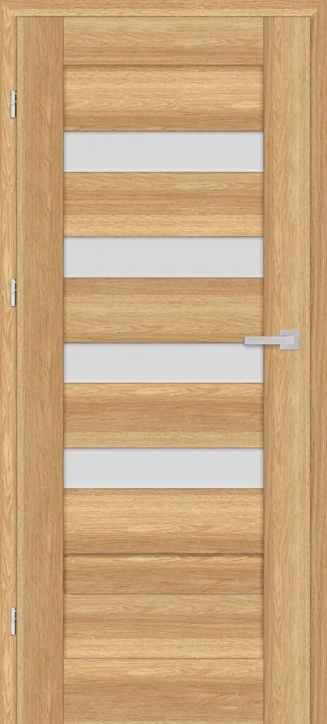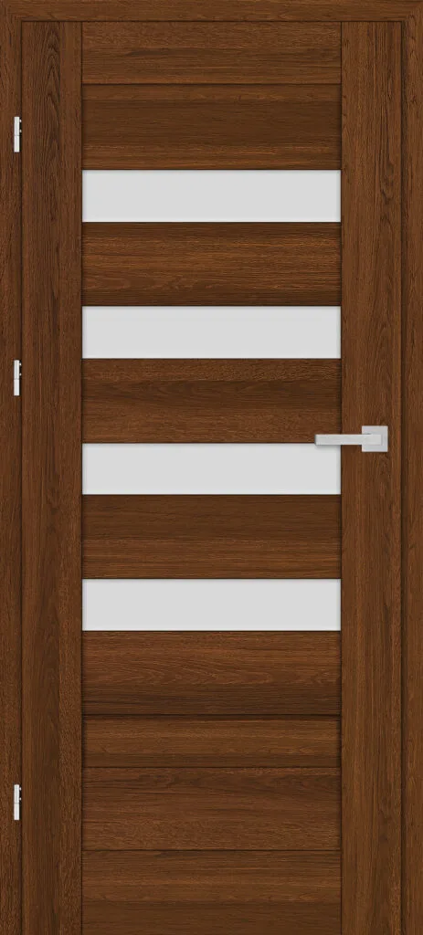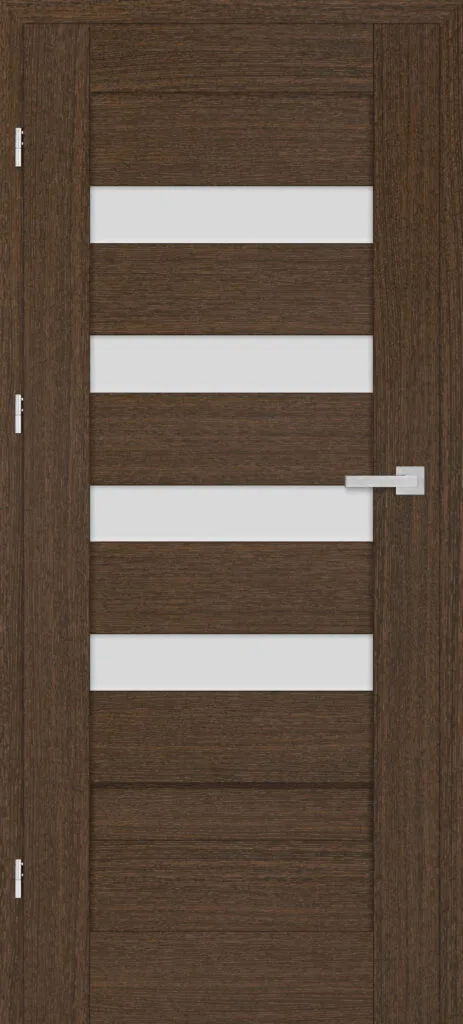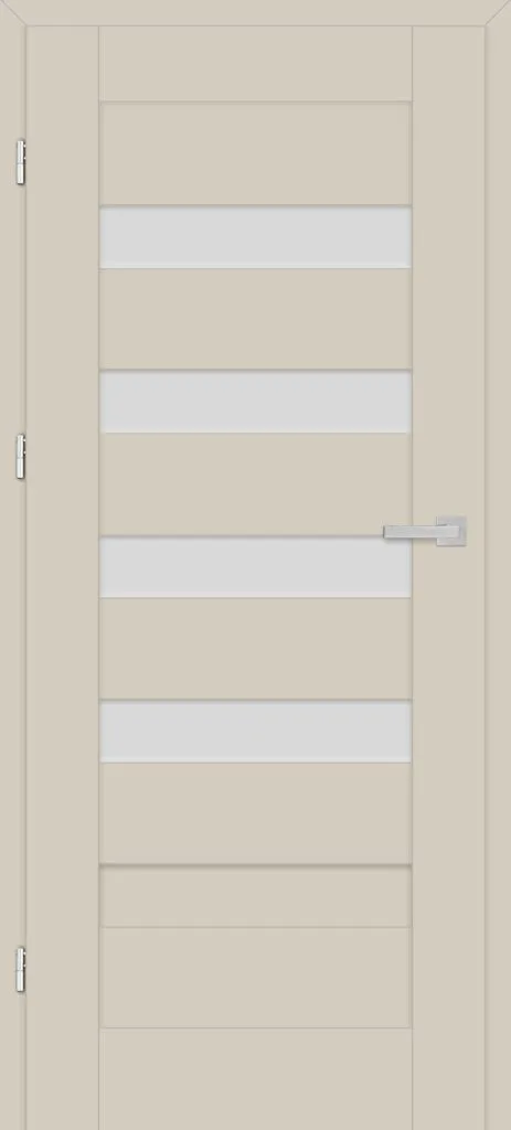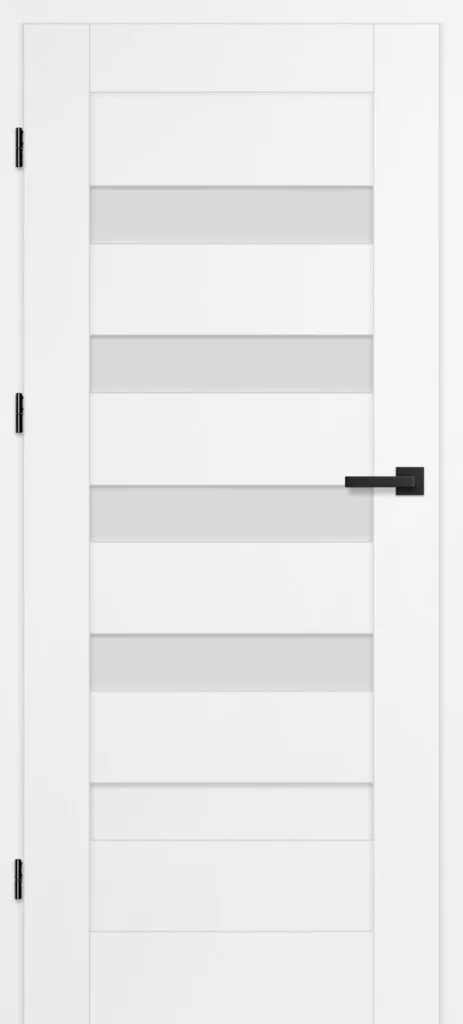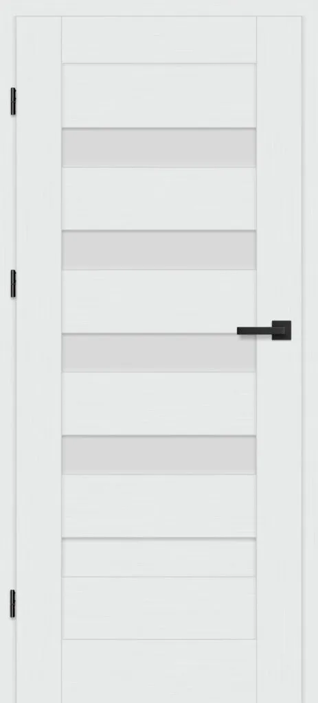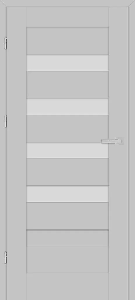 • three, silver-colored (optionally black at an additional cost) concealed hinges in the non-rebated door leaf; the hinges are delivered and priced with the door frame