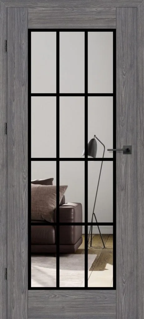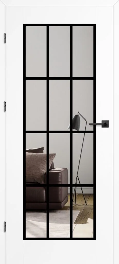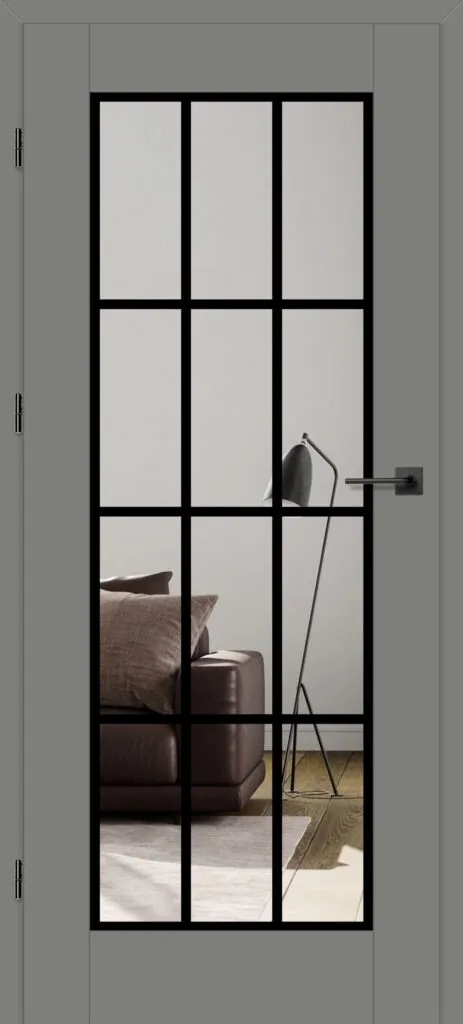 • three, silver-colored (optionally black at an additional cost) concealed hinges in the non-rebated door leaf; the hinges are delivered and priced with the door frame