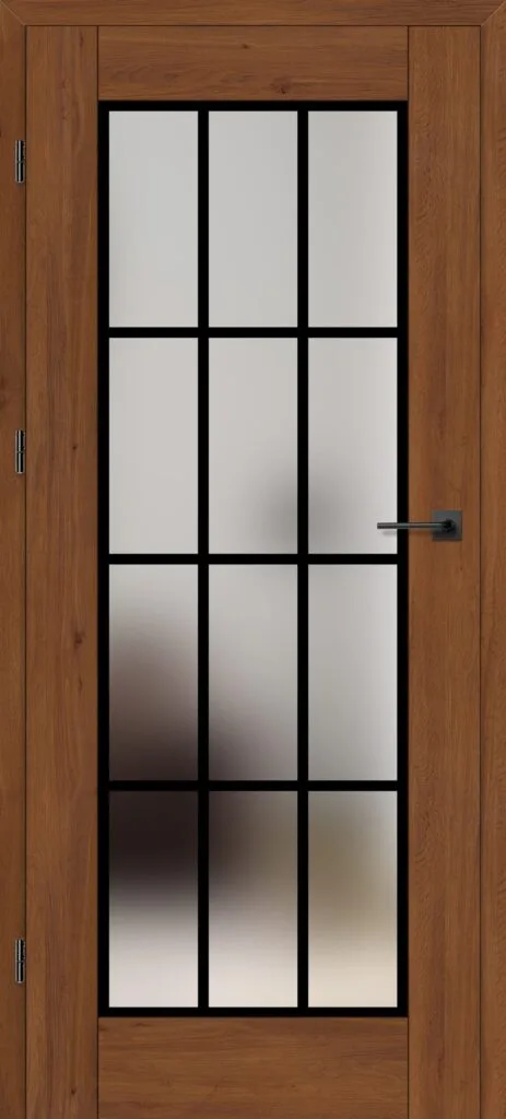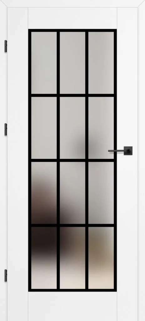 • three, silver-colored (optionally black at an additional cost) concealed hinges in the non-rebated door leaf; the hinges are delivered and priced with the door frame