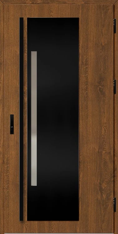 Entrance doors made of steel sheet, protected with PVC laminate, characterized by high resistance to changing weather conditions, UV radiation and mechanical damage. The texture matching the decorative motif creates a product of high aesthetic value.