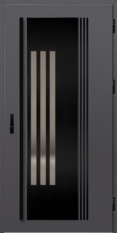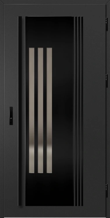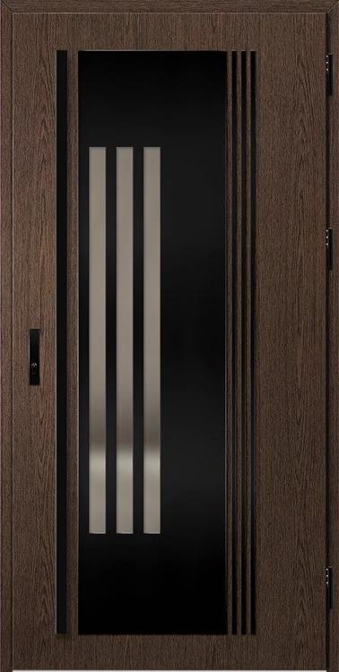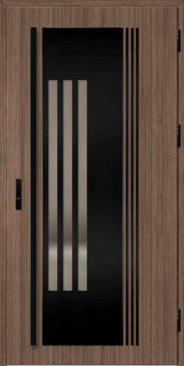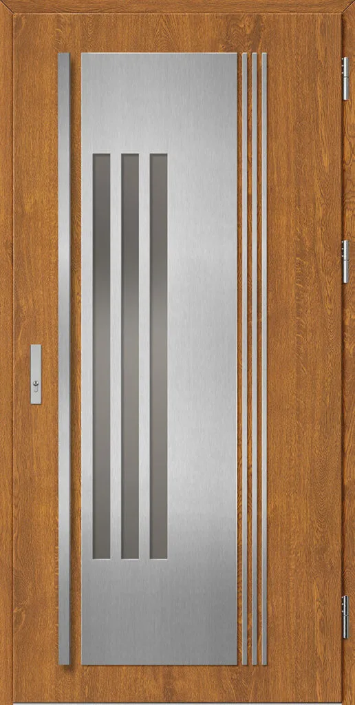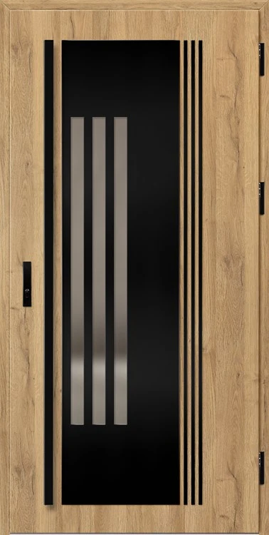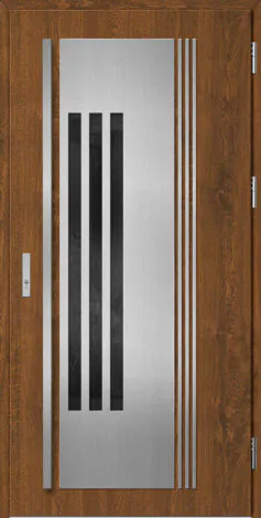 Entrance doors made of steel sheet, protected with PVC laminate, characterized by high resistance to changing weather conditions, UV radiation and mechanical damage. The texture matching the decorative motif creates a product of high aesthetic value.