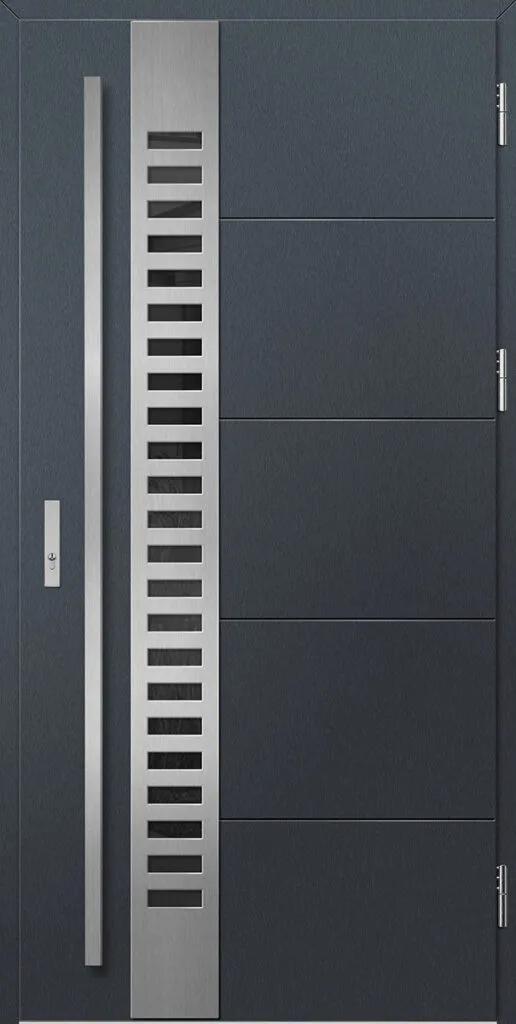 Galvanized steel frame structure – laminated in the same color as the door leaf, with a warm aluminum threshold, for doors with THERMO technology.