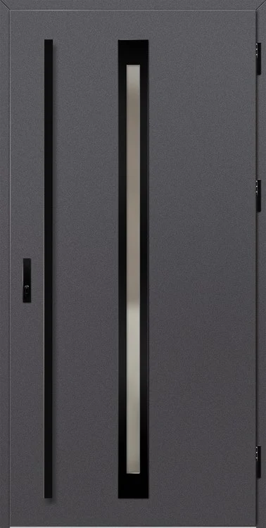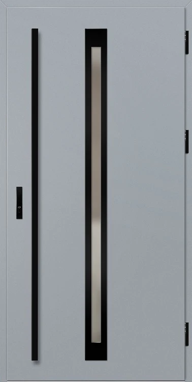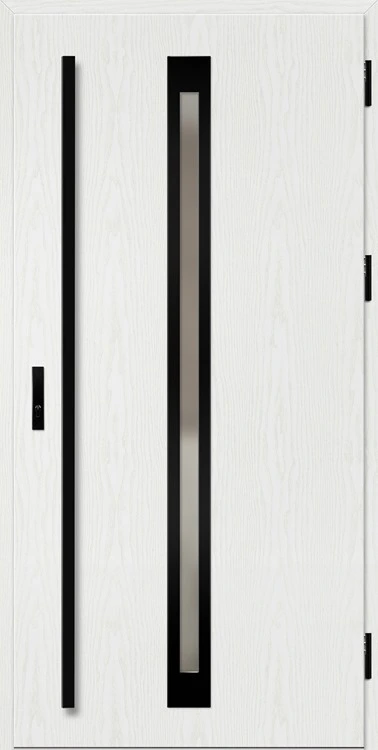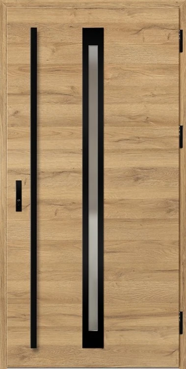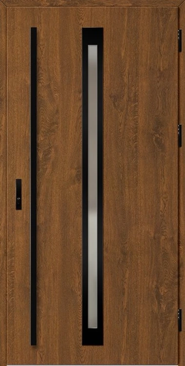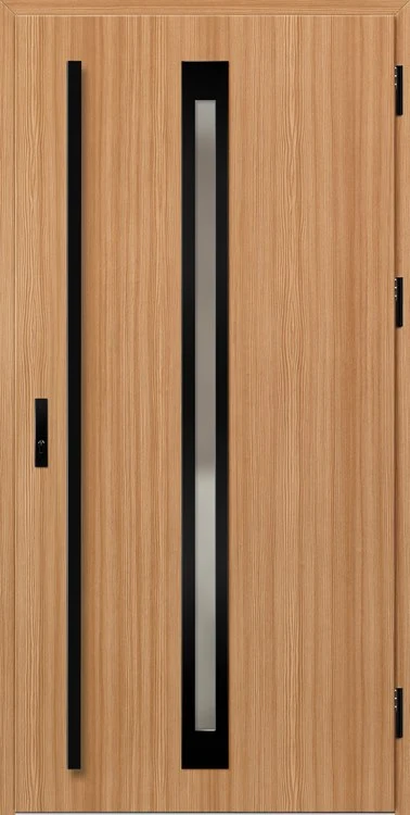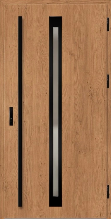 Entrance doors made of steel sheet, protected with PVC laminate, characterized by high resistance to changing weather conditions, UV radiation and mechanical damage. The texture matching the decorative motif creates a product of high aesthetic value.
