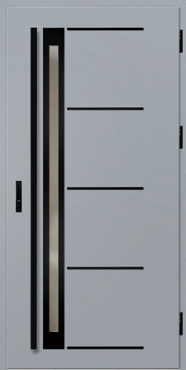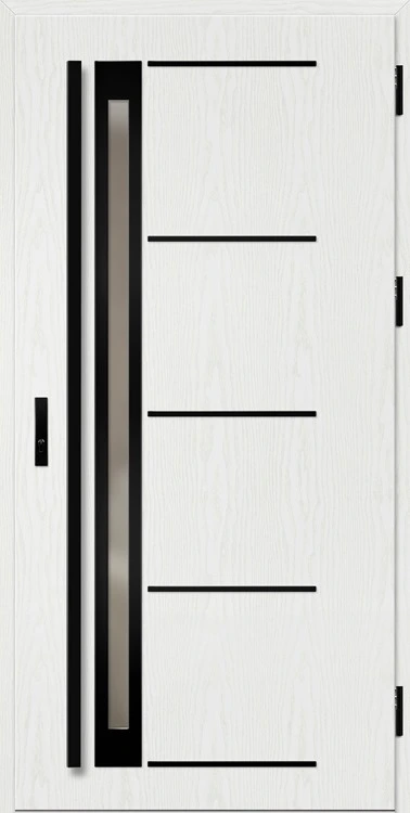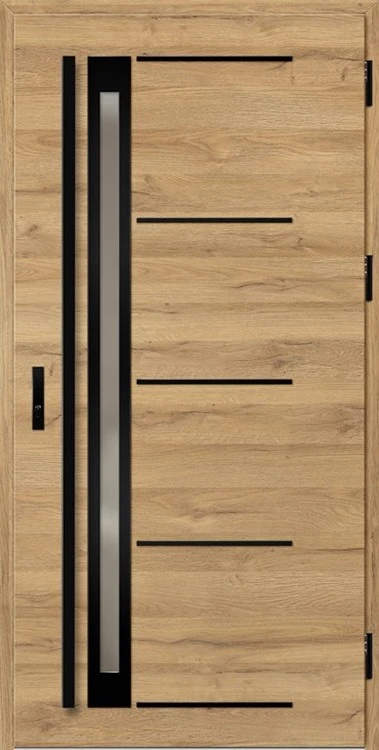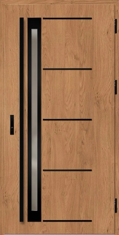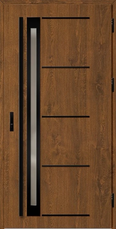 Entrance doors made of steel sheet, protected with PVC laminate, characterized by high resistance to changing weather conditions, UV radiation and mechanical damage. The texture matching the decorative motif creates a product of high aesthetic value.
