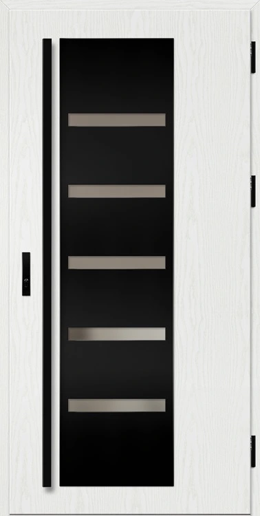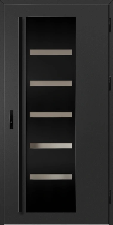 - fekete színre festett és a szárnnyal megegyező színben laminált alumínium ajtótok, meleg alumínium küszöbbel és teljesen állítható zárlemezzel a THERMO HOT technológiával készült ajtók esetében