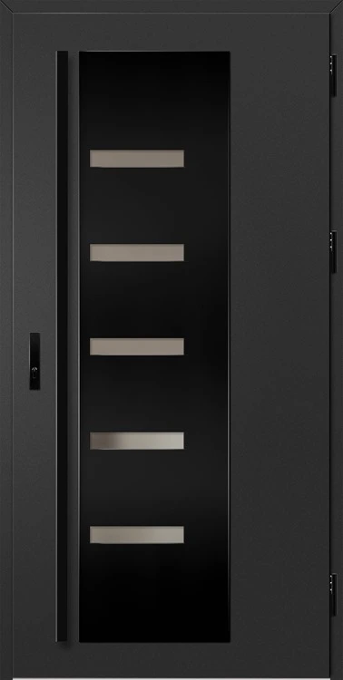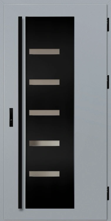 • fekete színre festett és a szárnnyal megegyező színben laminált alumínium ajtótok, meleg alumínium küszöbbel és teljesen állítható zárlemezzel a THERMO HOT technológiával készült ajtók esetében