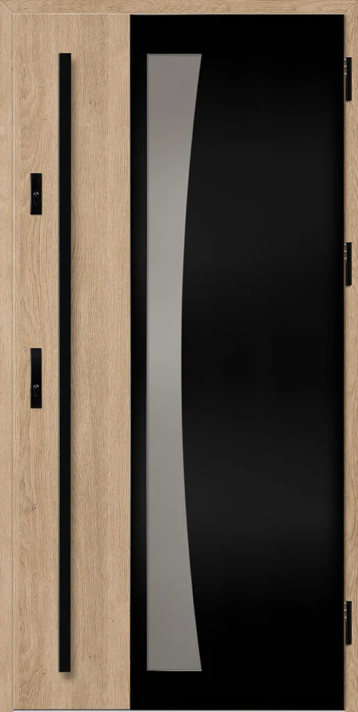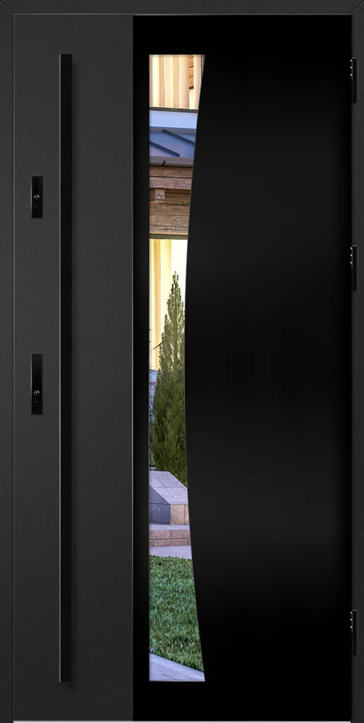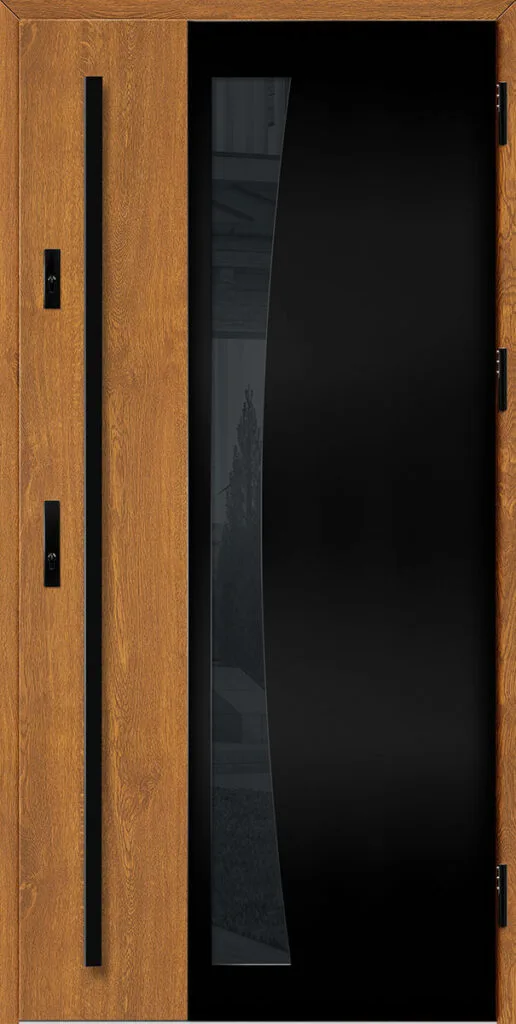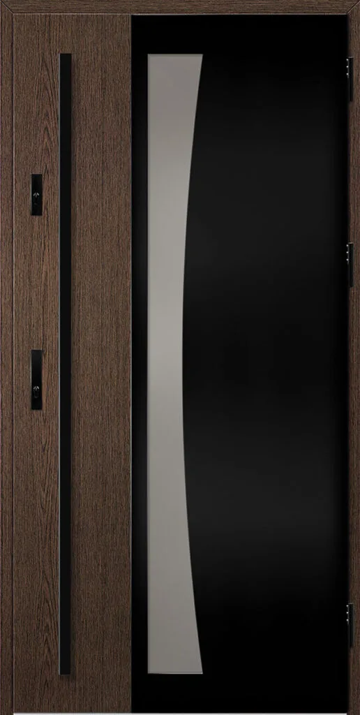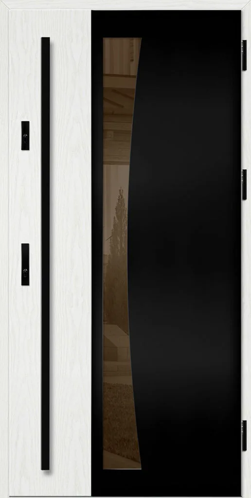- fekete színre festett és a szárnnyal megegyező színben laminált alumínium tok, meleg alumínium küszöbbel és teljesen állítható nyelvvezetővel a THERMO HOT technológiával készült ajtók esetében