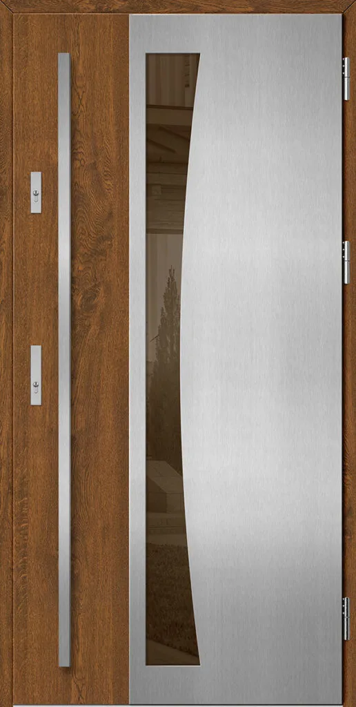 - horganyzott acéltok, a szárnnyal megegyező színben laminálva, meleg alumínium küszöbbel a THERMO technológiával készült ajtókhoz