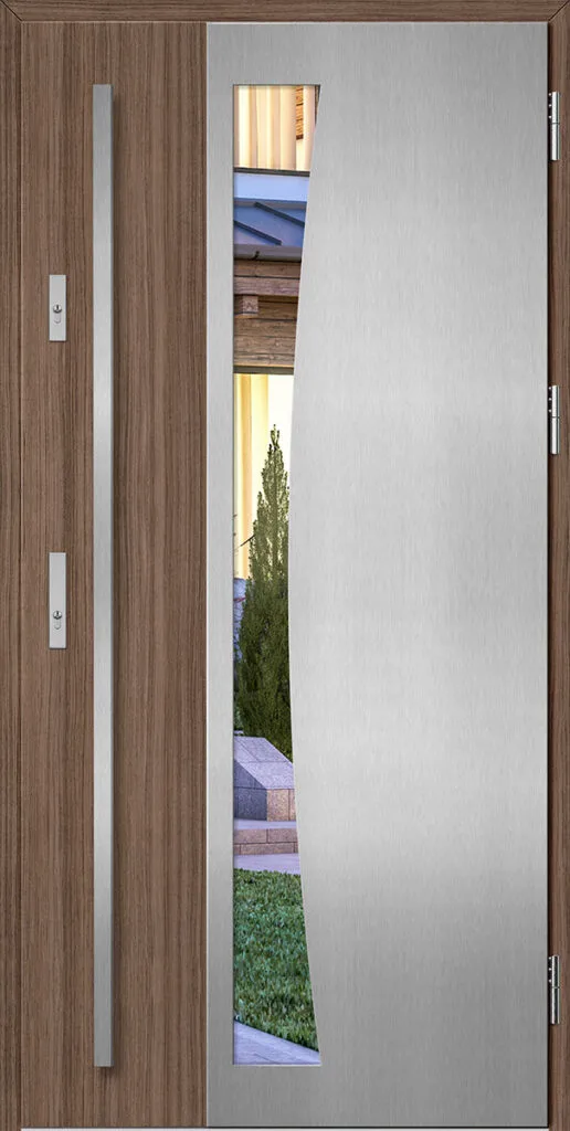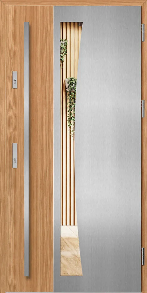 Acéllemezből készült ajtók, PVC laminátummal védve, amelyet a változó időjárási körülményekkel és az UV-sugárzással szembeni magas ellenálló képesség jellemez. A kiváló minőségű anyagok használata nemcsak esztétikát, hanem tartósságot és biztonságot is garantál hosszú éveken át.