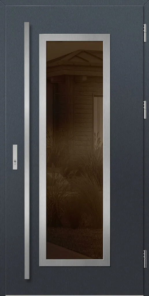 • horganyzott acéltok, a szárnnyal megegyező színben laminálva, meleg alumínium küszöbbel a THERMO technológiával készült ajtókhoz
