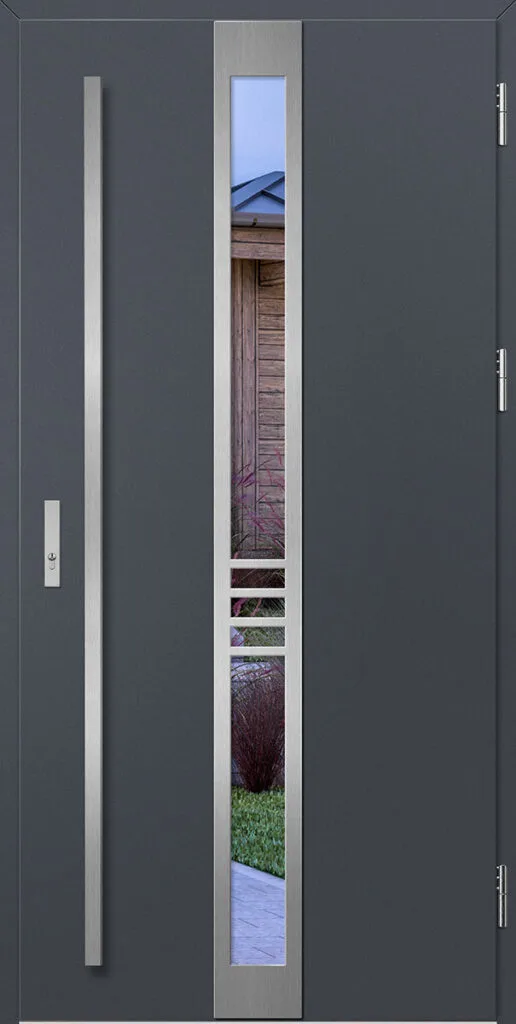 Horganyzott acél tokszerkezet – az ajtólappal azonos színben laminálva, meleg alumínium küszöbbel, THERMO technológiájú ajtókhoz.