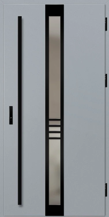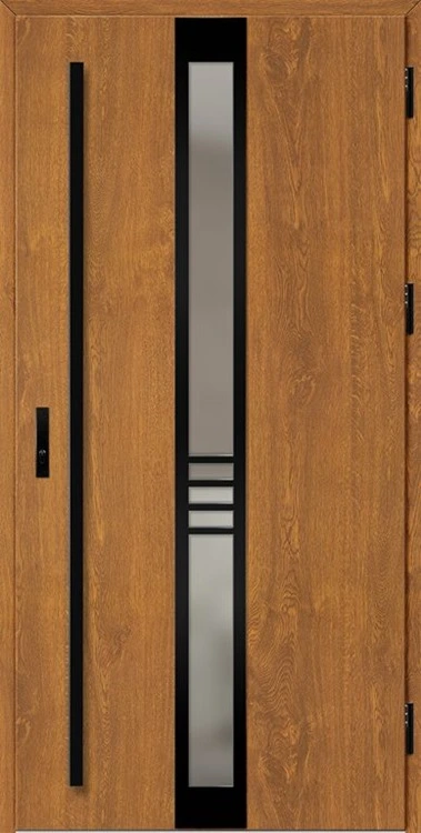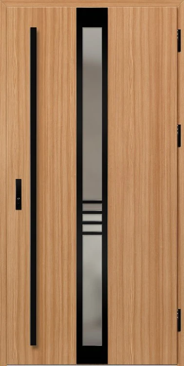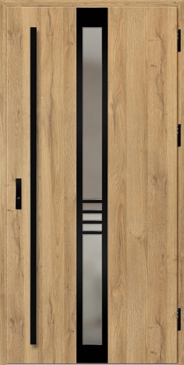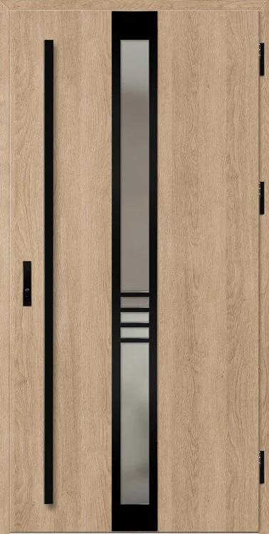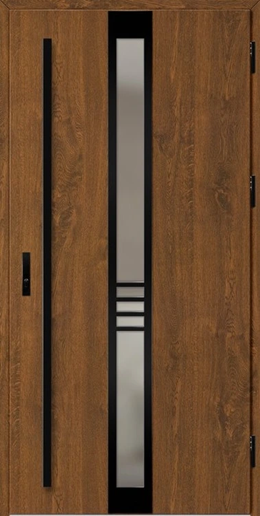 Kültéri ajtók acéllemezből, PVC laminátummal védve, amely nagy ellenállást biztosít a változó időjárási körülményekkel, UV-sugárzással és mechanikai sérülésekkel szemben. A dekoratív motívumhoz illeszkedő textúra magas esztétikai értéket kölcsönöz a terméknek.