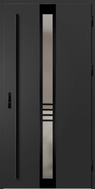 Négyrétegű üvegezés edzett ESG külső üveggel. A szigetelő üvegegységekben fekete távtartó kerül alkalmazásra.