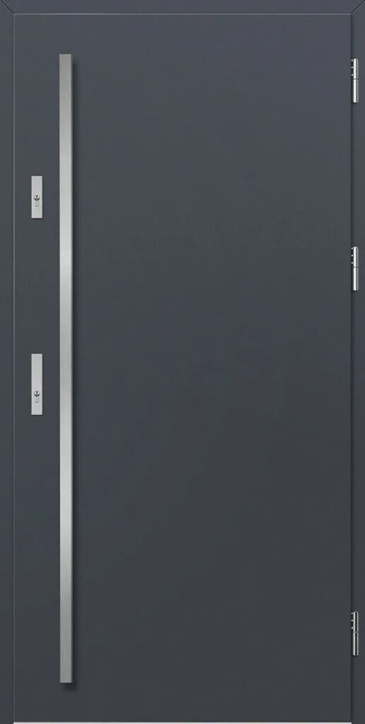 Kültéri ajtók acéllemezből, PVC laminátummal védve, amely kiemelkedő ellenállást biztosít a változó időjárási körülményekkel, az UV-sugárzással és a mechanikai sérülésekkel szemben. A dekoratív motívumhoz igazodó textúra magas esztétikai értéket kölcsönöz a terméknek.